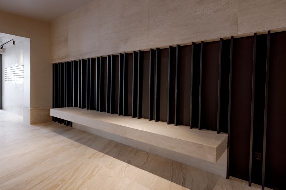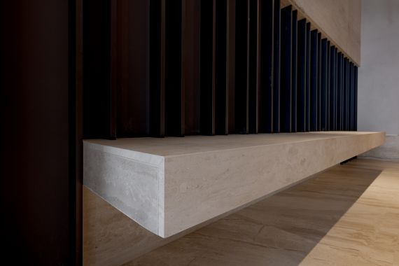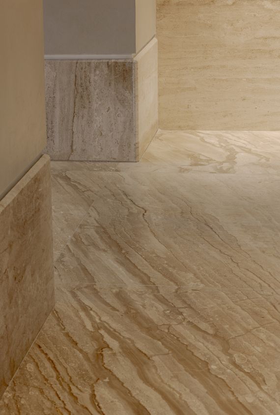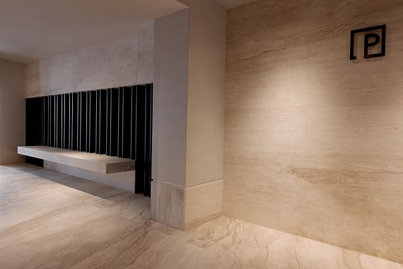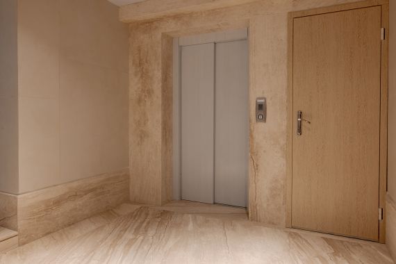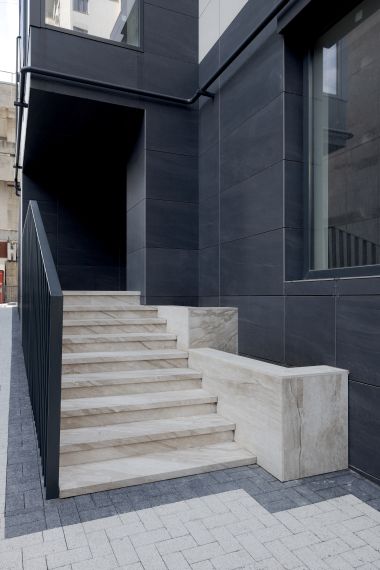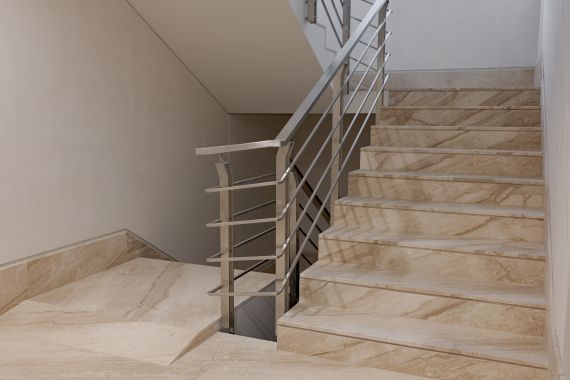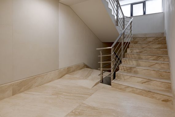 The entrance area showcases seamless wall and floor cladding, setting the tone for a refined and inviting atmosphere. Stairs, hallways, and elevator frames are all crafted from the same marble, maintaining aesthetic coherence and visual flow throughout the building. Every corner and edge was carefully shaped under the supervision of the project architect to ensure flawless alignment.